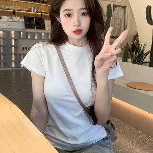 Cotton shoulder short sleeve T-shirt women’s summer