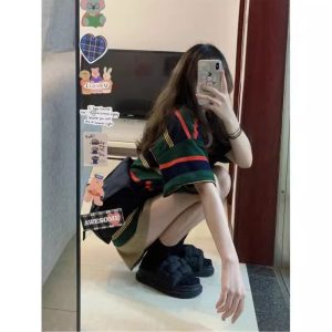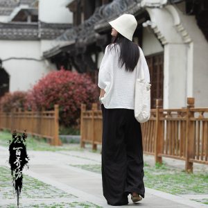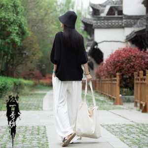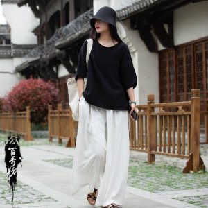 Be the first to review “Cotton and linen women’s new double-layer bamboo texture sense round neck loose design women’s bat shirt T-shirt”